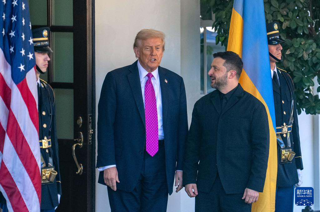 10月17日,在好意思国齐门华盛顿白宫,好意思国总统特朗普(左二)迎接乌克兰总统泽连斯基(左三)。新华社记者胡友松摄